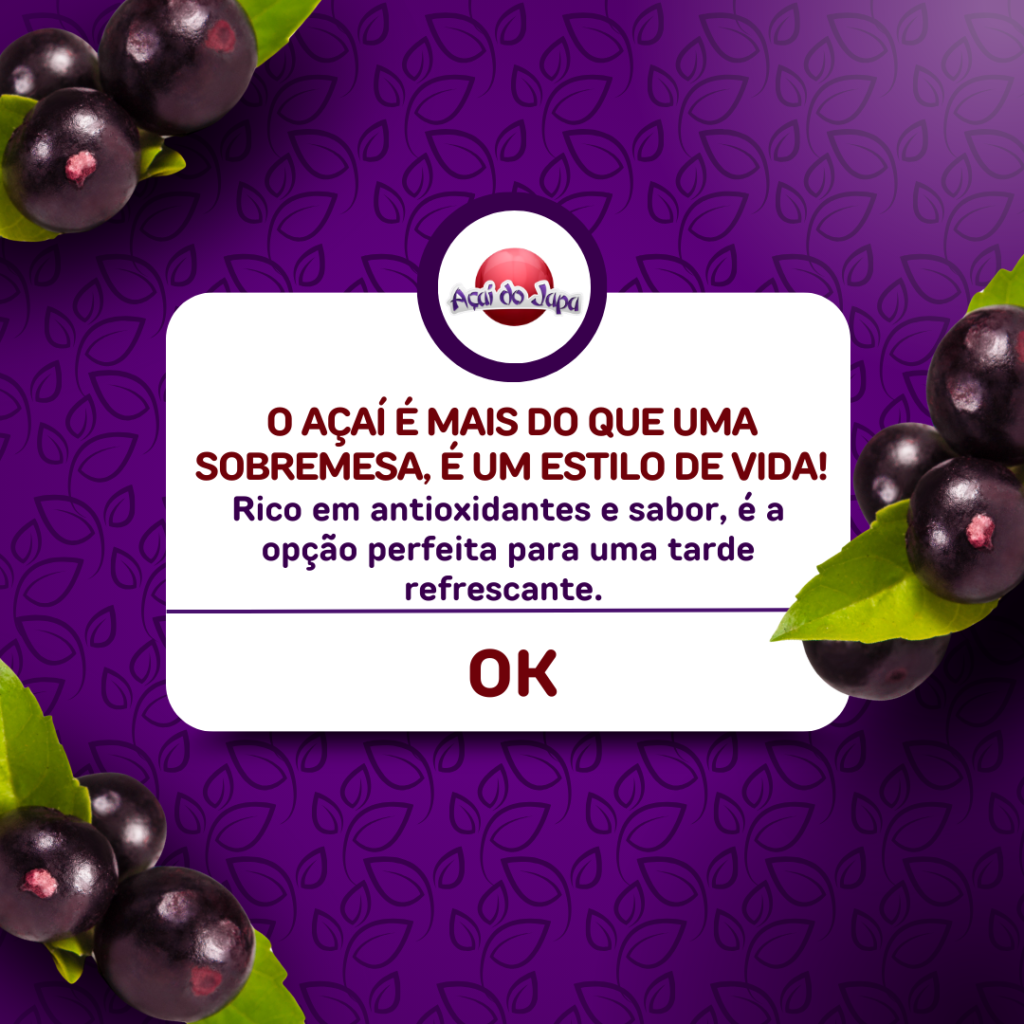 Transforme sua paixão pelo açaí em um negócio de sucesso! Seja um franqueado do Açaí do Japa e faça parte da rede que conquistou o Brasília e vai conquistar o Brasil com sabor e qualidade incomparáveis.